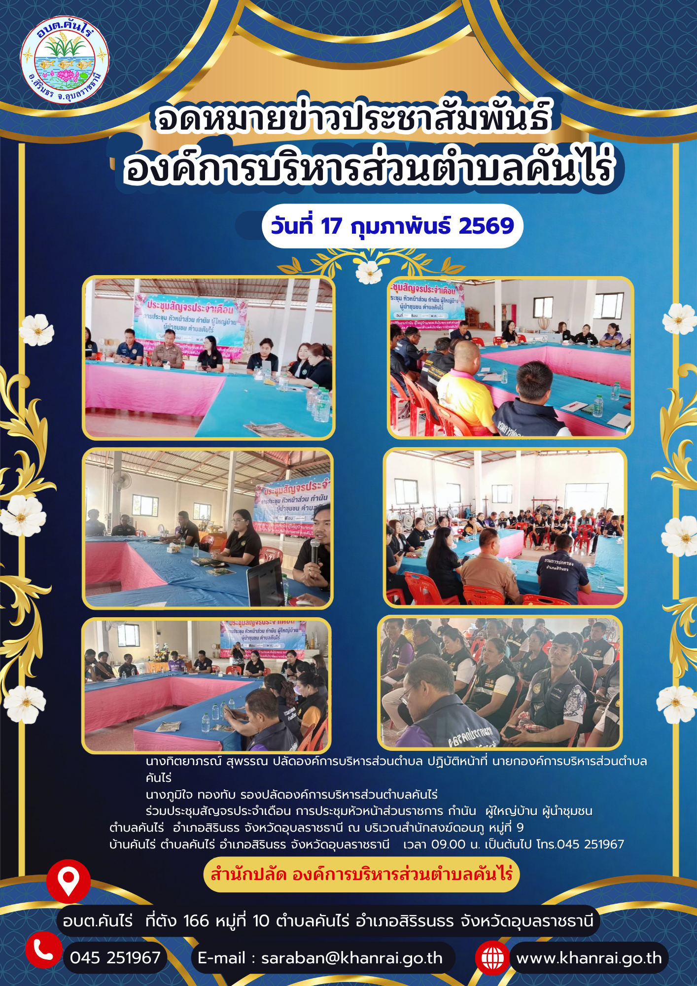 ขอประชาสัมพันธ์กิจกรรมหน่วยงาน การดำเนินงานกิจกรรมโครงการต่างๆ ของเจ้าหน้าที่ องค์การบริหารส่วนตำบลคันไร่ จดหมายข่าวองค์การบริหารส่วนตำบลคันไร่ ประจำเดือน กุมภาพันธ์ 2569 ฉบับที่ 1/2569
