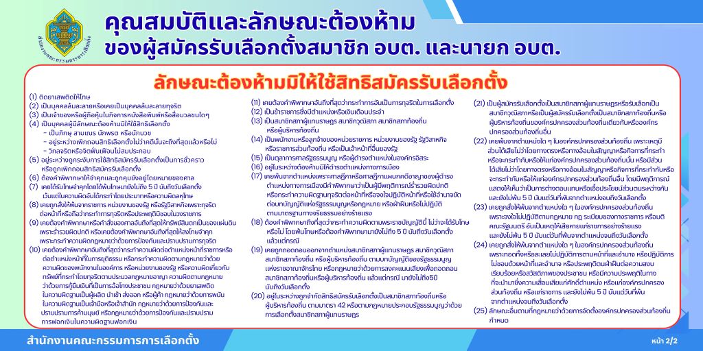 ขอประชาสัมพันธ์แบบฟอร์มใบสมัคร คุณสมบัติและลักษณะต้องห้ามของผู้มีสิทธิสมัครเลือกตั้งสมาชิก อบต. และนายก อบต.