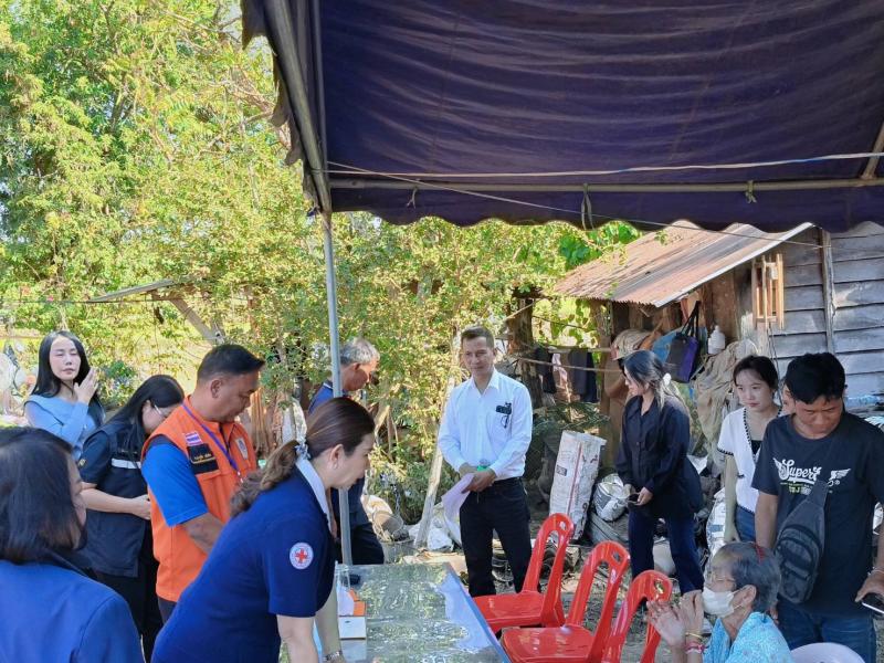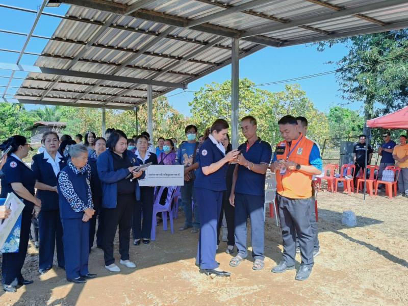เหล่ากาชาดอำเภอสิรินธร จังหวัดอุบลราชธานี ผู้นำชุมชน อสม. ร่วมต้อนรับเหล่ากาชาดจังหวัดอุบลราชธานี เพื่อมอบถุงยังชีพให้กับผู้ประสบภัยในเขตพื้นที่ตำบลคันไร่
