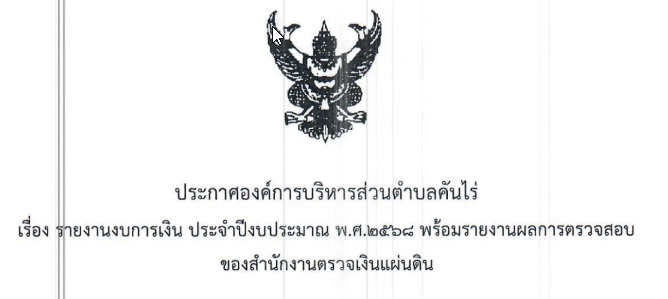 ขอประชาสัมพันธ์ การดำเนินงานรายงานการตรวจสอบรายงานการเงิน องค์การบริหารส่วนตำบลคันไร่ อำเภอสิรินธร จังหวัดอุบลราชธานี ประจำปีงบประมาณ พ.ศ. 2568